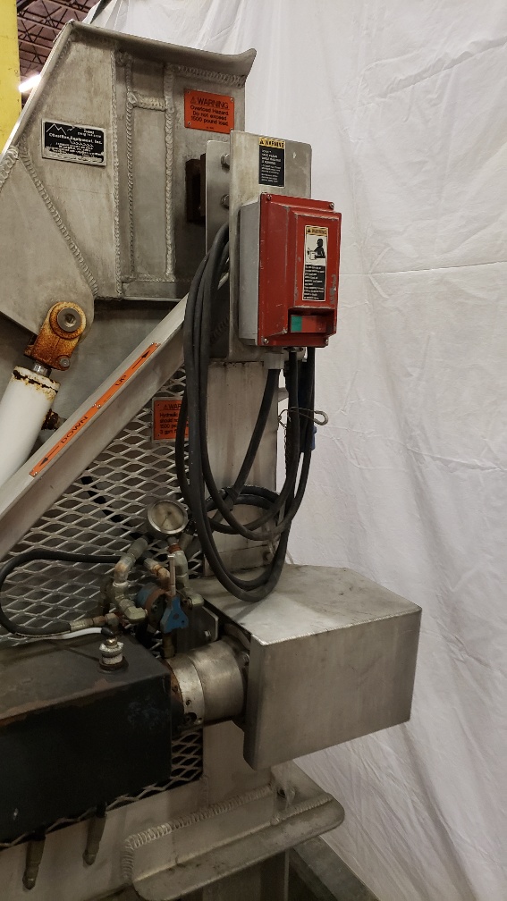 Used Coastline Equipment All Stainless-Steel Bin Dumper, Model 1304. Features: Hydro-Pack; bin opening measuring 59” W x 43” D x 56”H; and adjustable height section for different bin heights.