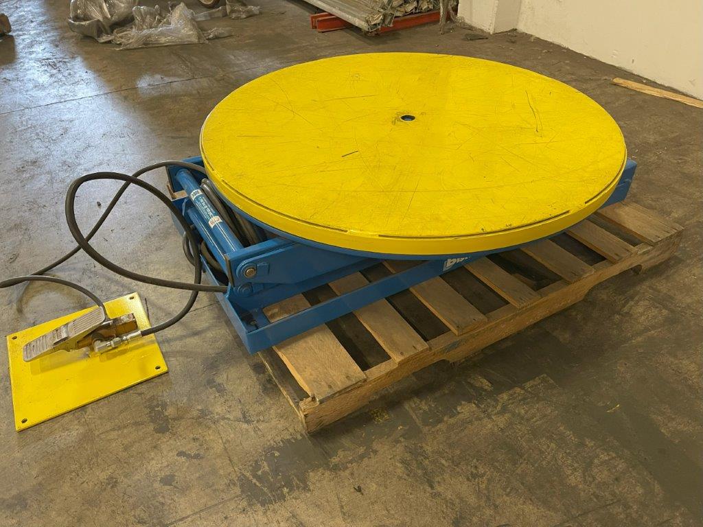 System Information: Manufacturer: F.E. Bennett Co. Model: EZU-15-R Travel: 20 inches Platform: 43” Dia. Round Platform Raised: 30.6 Inches Capacity @90 PSI: 1500 Capacity @100 PSI: 1700 The system is in good condition and is the first of two available. It is sold in As-In, Where-Is Condition.