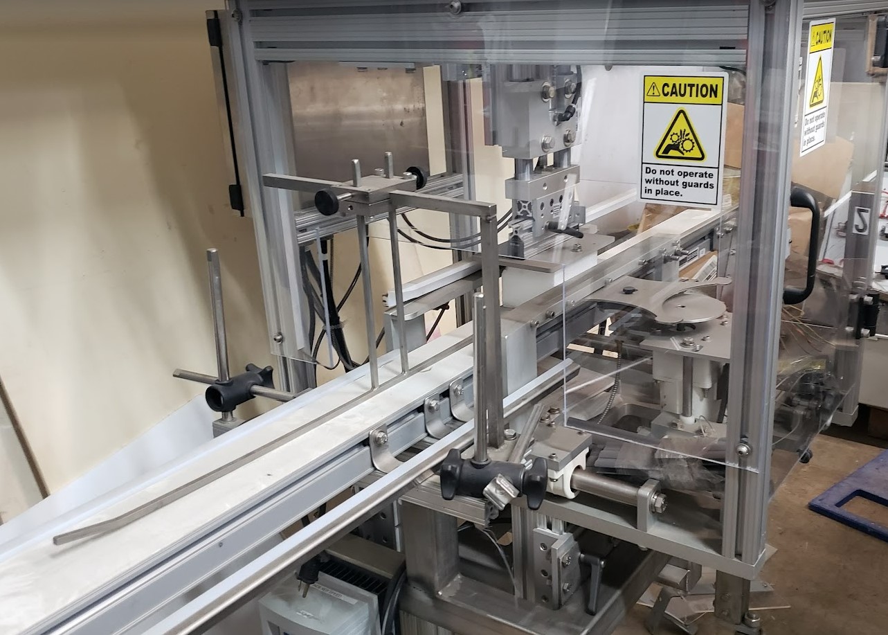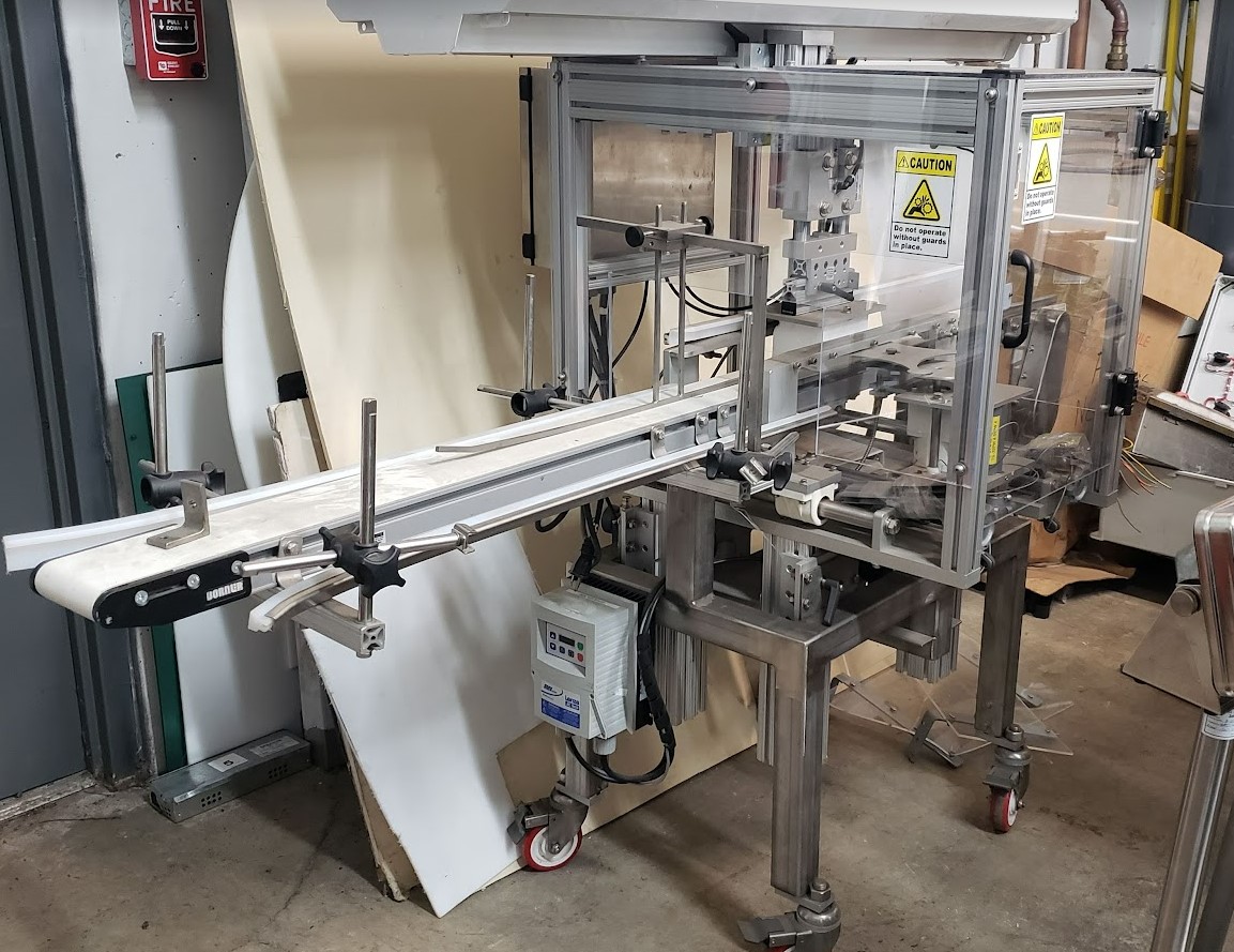 Used Inline Plastic Safe T Fresh Clamshell Closer with a pneumatic pusher