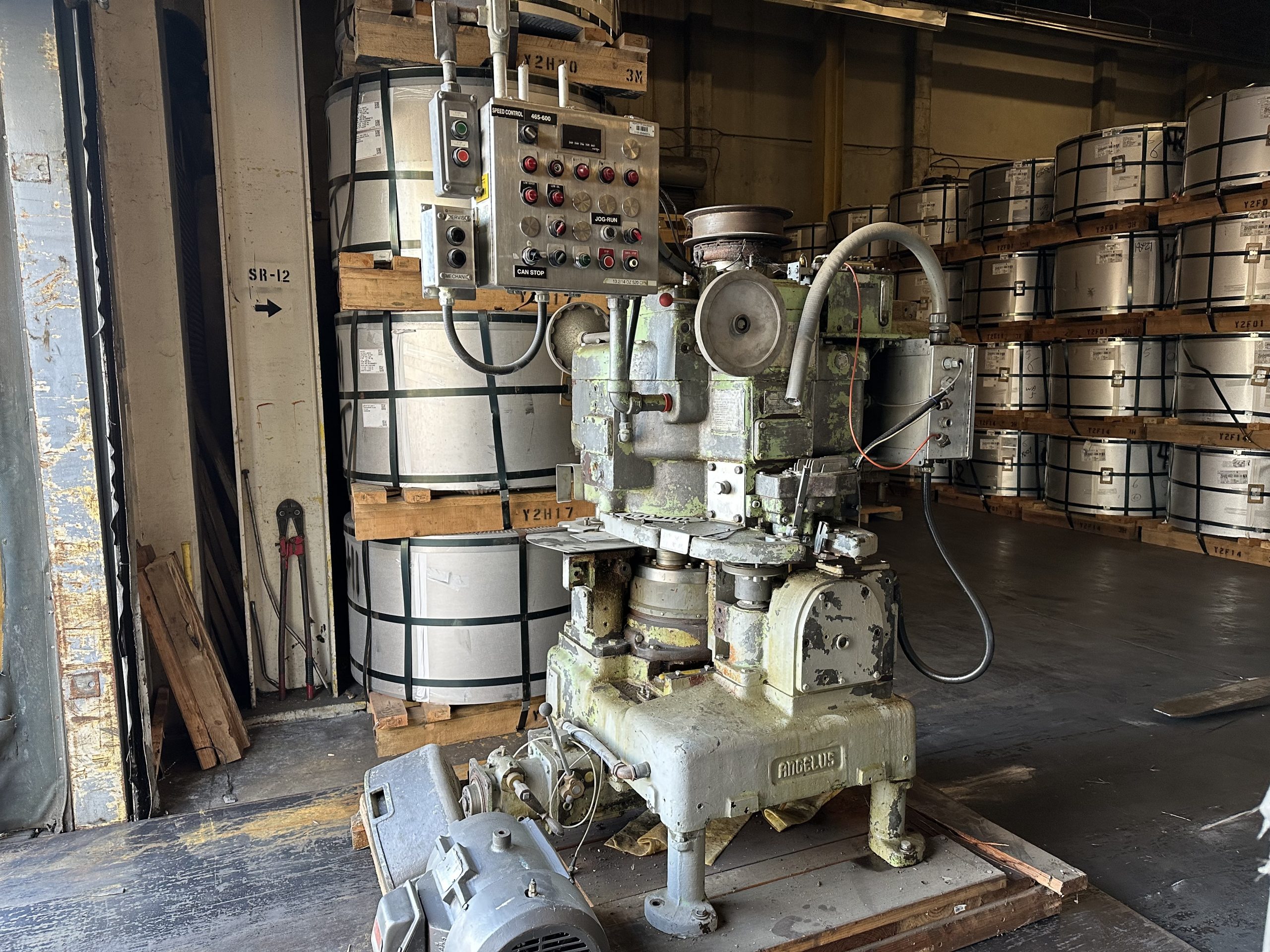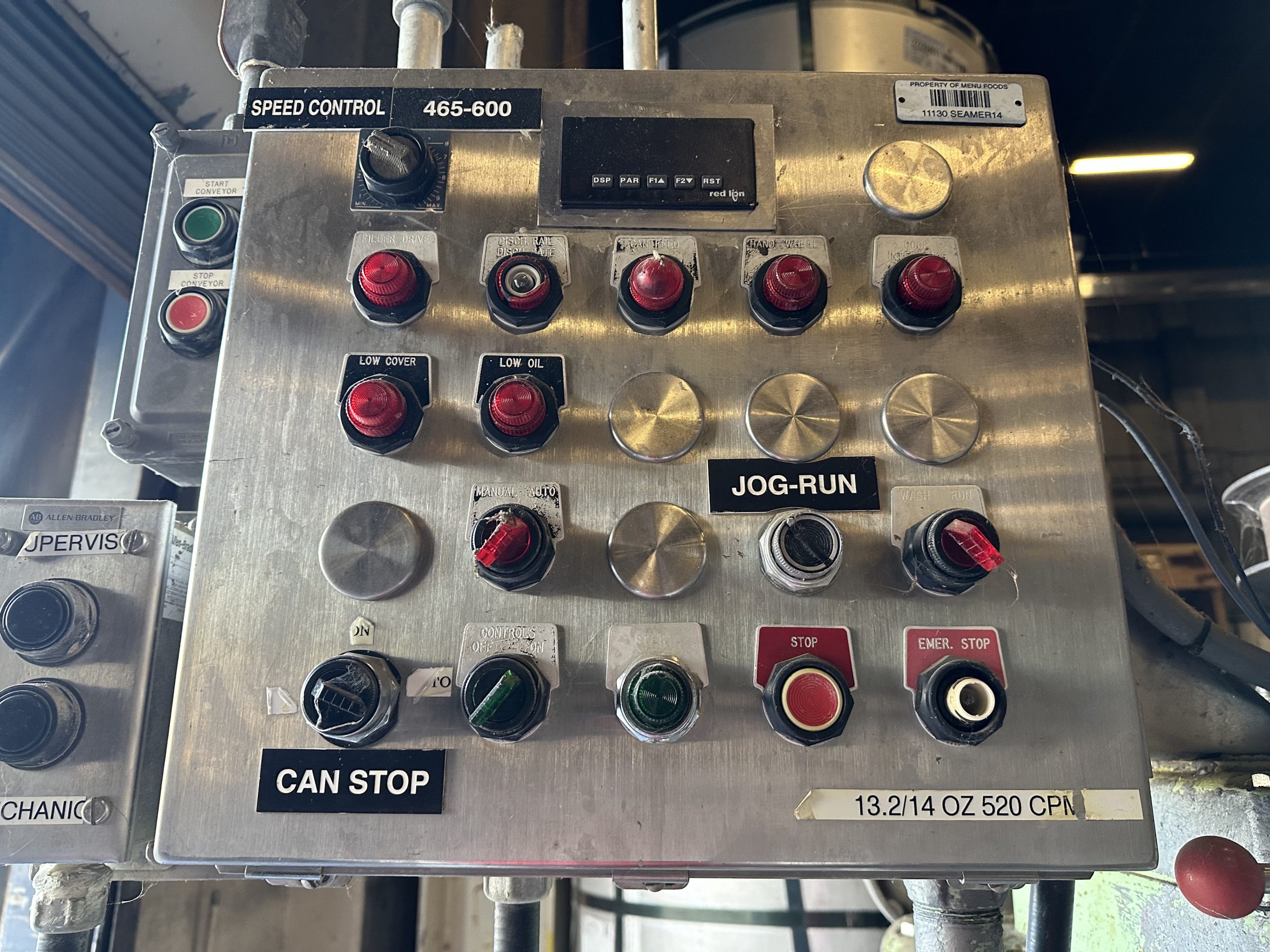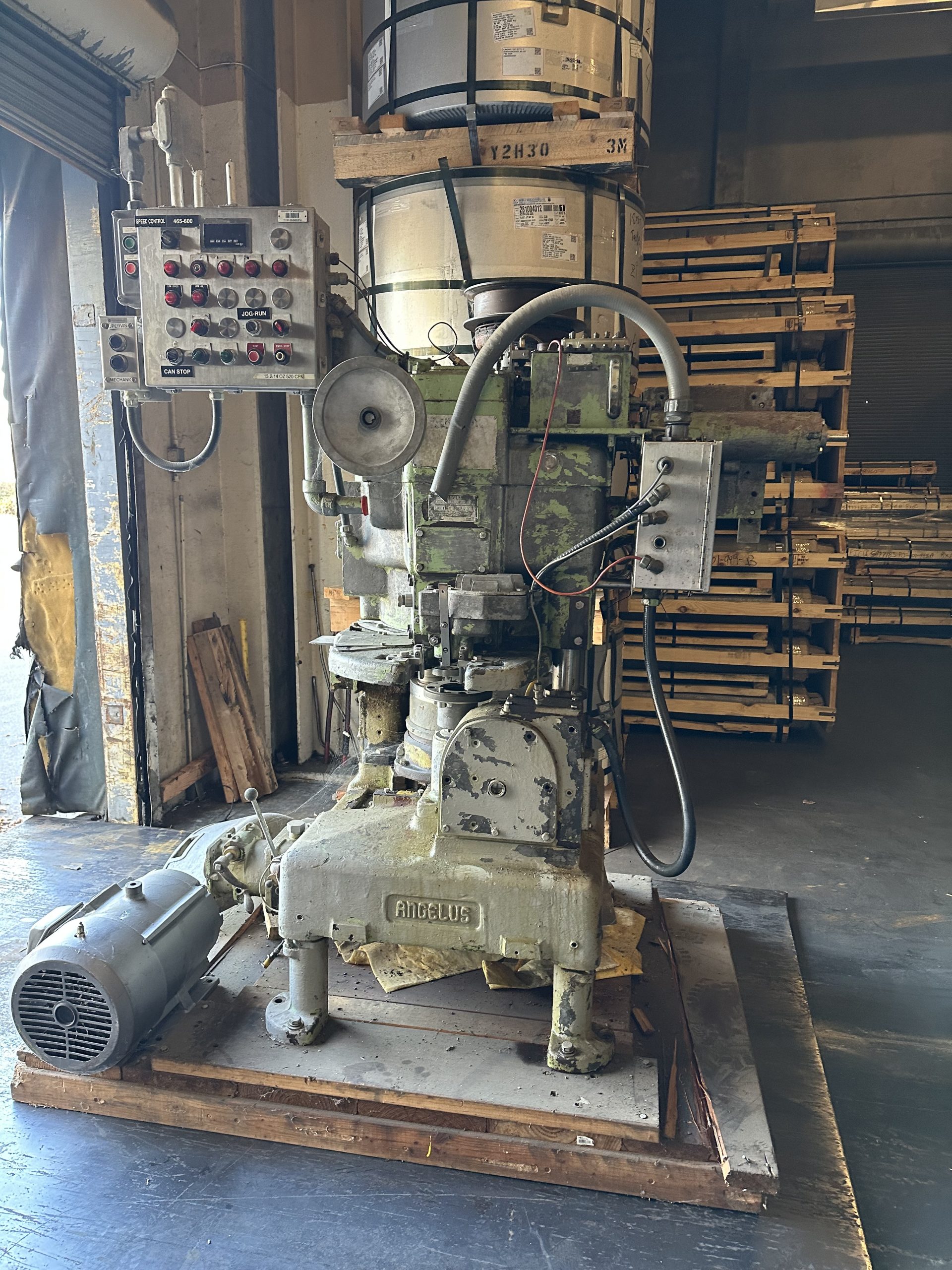 System Information: Manufacturer: Angelus Pneumatic Scale Model: 61H Seamer – Missing change parts, can feed table and can feeding chain.   The system is in good condition. Is sold in As-In, Where-Is Condition