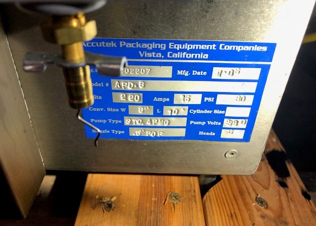 Used 2006 Accutek model APD6 filler and capper model ASC6 and conveyor – Last running Honey Filler: Model APD6 (Automatic Positive Displacement) 6 head filler Last running honey on an 8 oz, 12 oz, 16 oz, 24 oz, 23 oz, 32 oz, 46 oz Control: Siemens, Power: 220 Volts, 15 Amps, 80 PSI Pump type […]