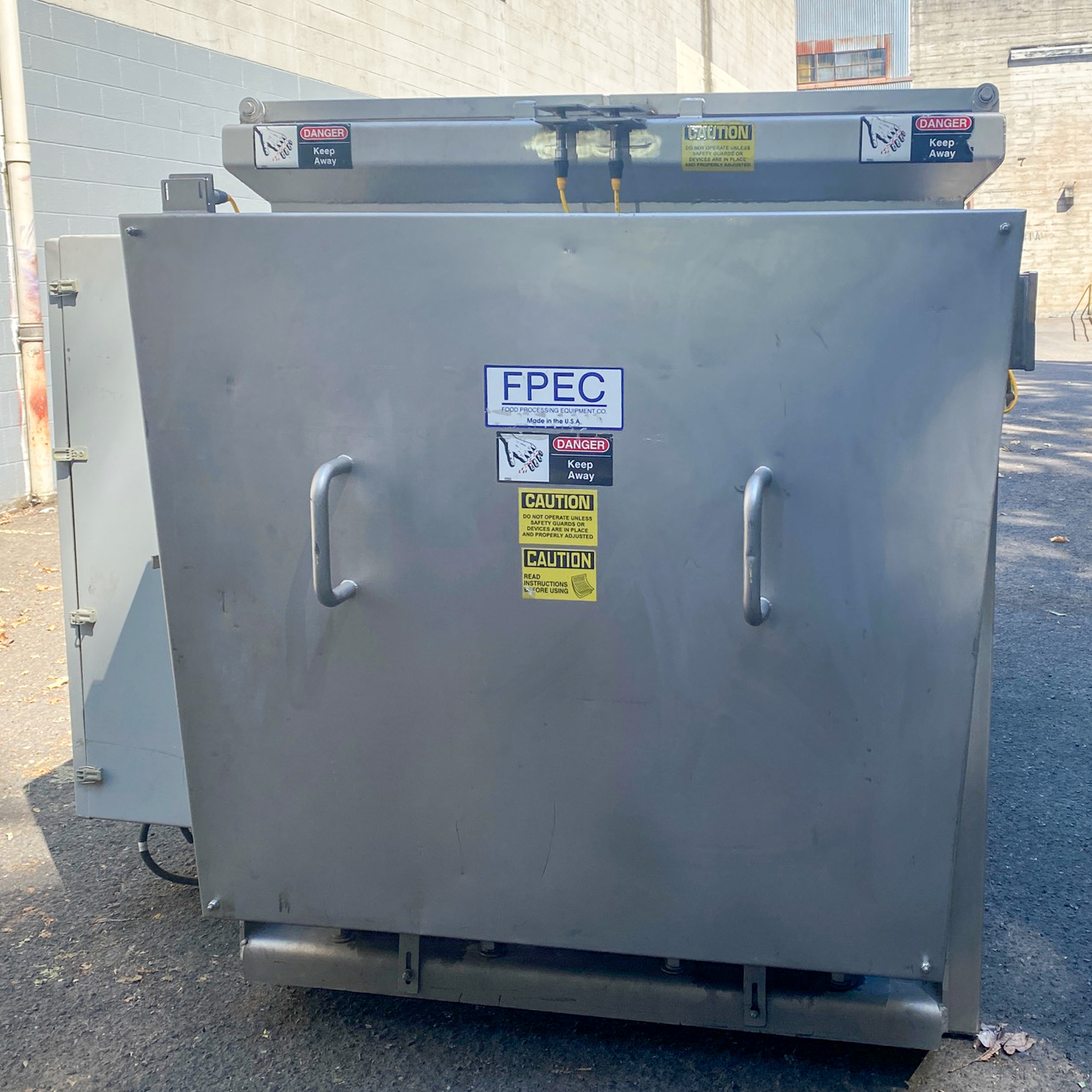 Used FPEC Double Ribbon Mixer, Model 814, with a capacity of 52 cubic feet – 3500 lbs. to 4000 lbs. depending on product.  The machine comes with two (2) 25 hp motors, two side-door discharge with pneumatic cylinders and electrical panel.