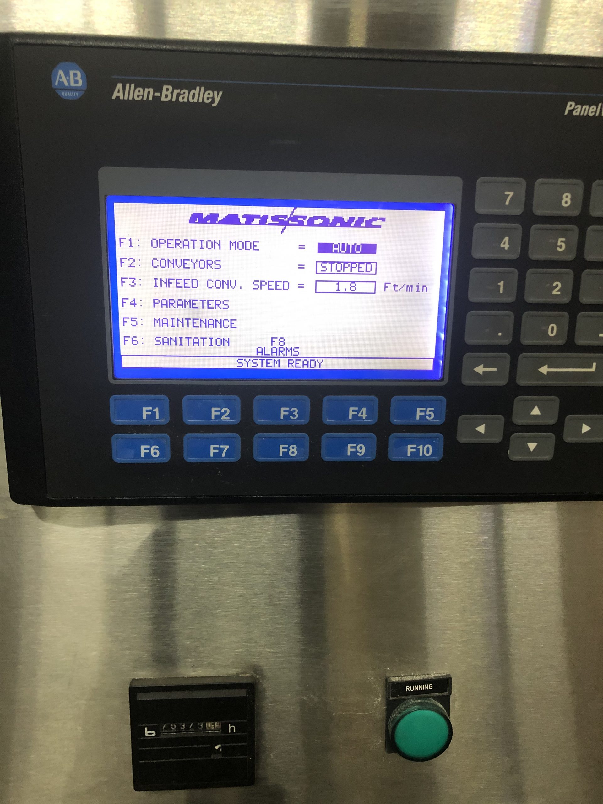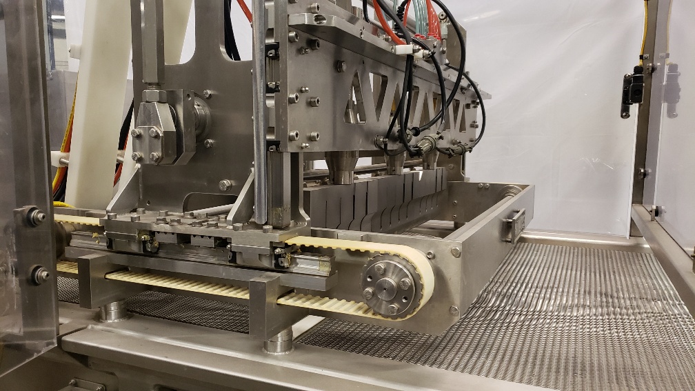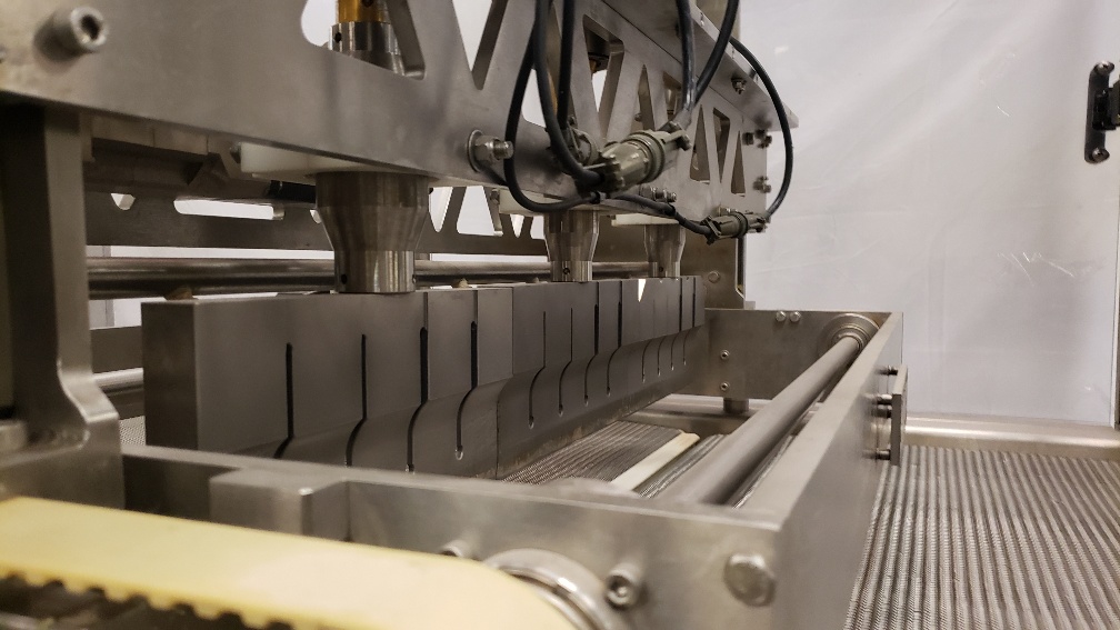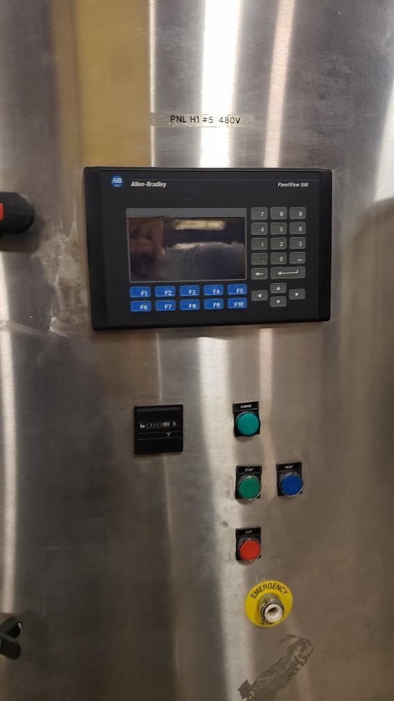 Used 2005 Matiss model GI-300 Ultrasonic Guillotine system last running Biscotti. The machine is equipped with Allen Bradly Logix 5560 controls and AB PanelView 550. Power is 480, 3Ph, 60Hz