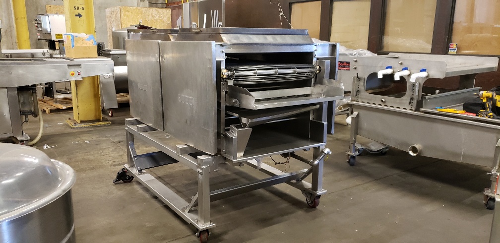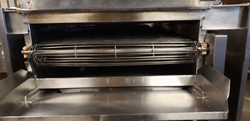 The machine was used for flame grilling chicken breasts, but can be used to fully cook or mark other meat items. The machine is sold in As-is, Where-is condition.