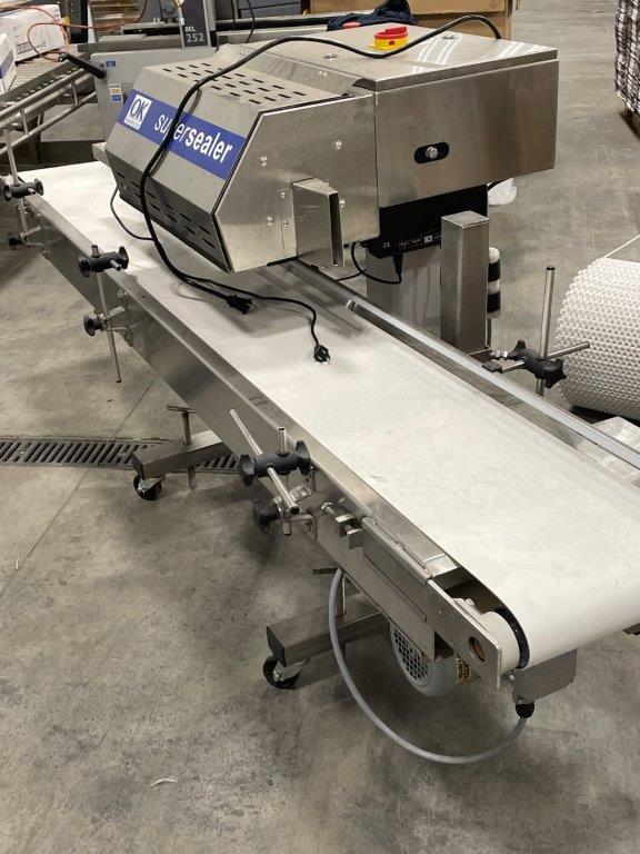 2019 OK Supersealer Model SS2L with an OK Conveyor Model M-500 (12” W x 8’ L)