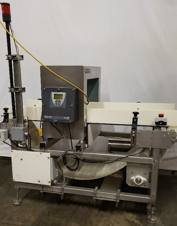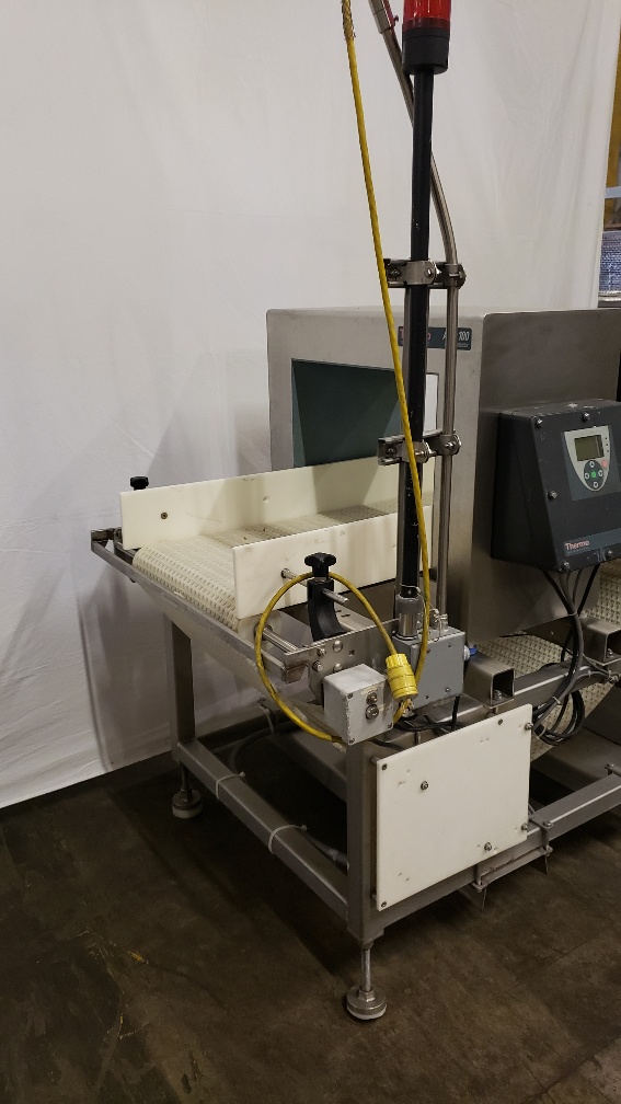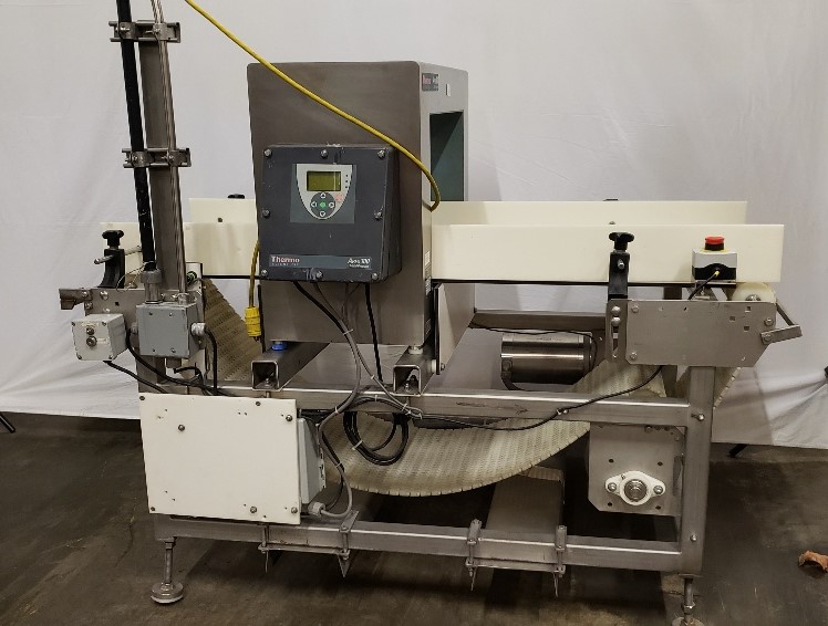 Used Thermo Fisher Scientific APEX 100 Metal Detector, with 19.75” X 14.25” Aperture, and 18” w X 5’-3″ Long Power Conveyor.