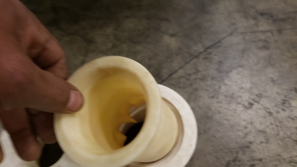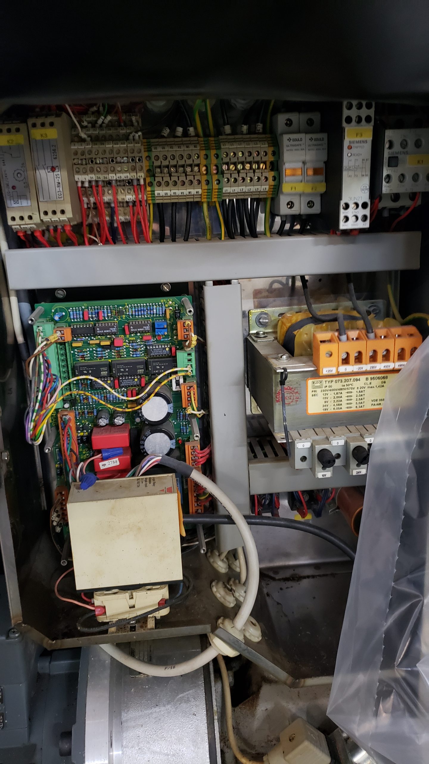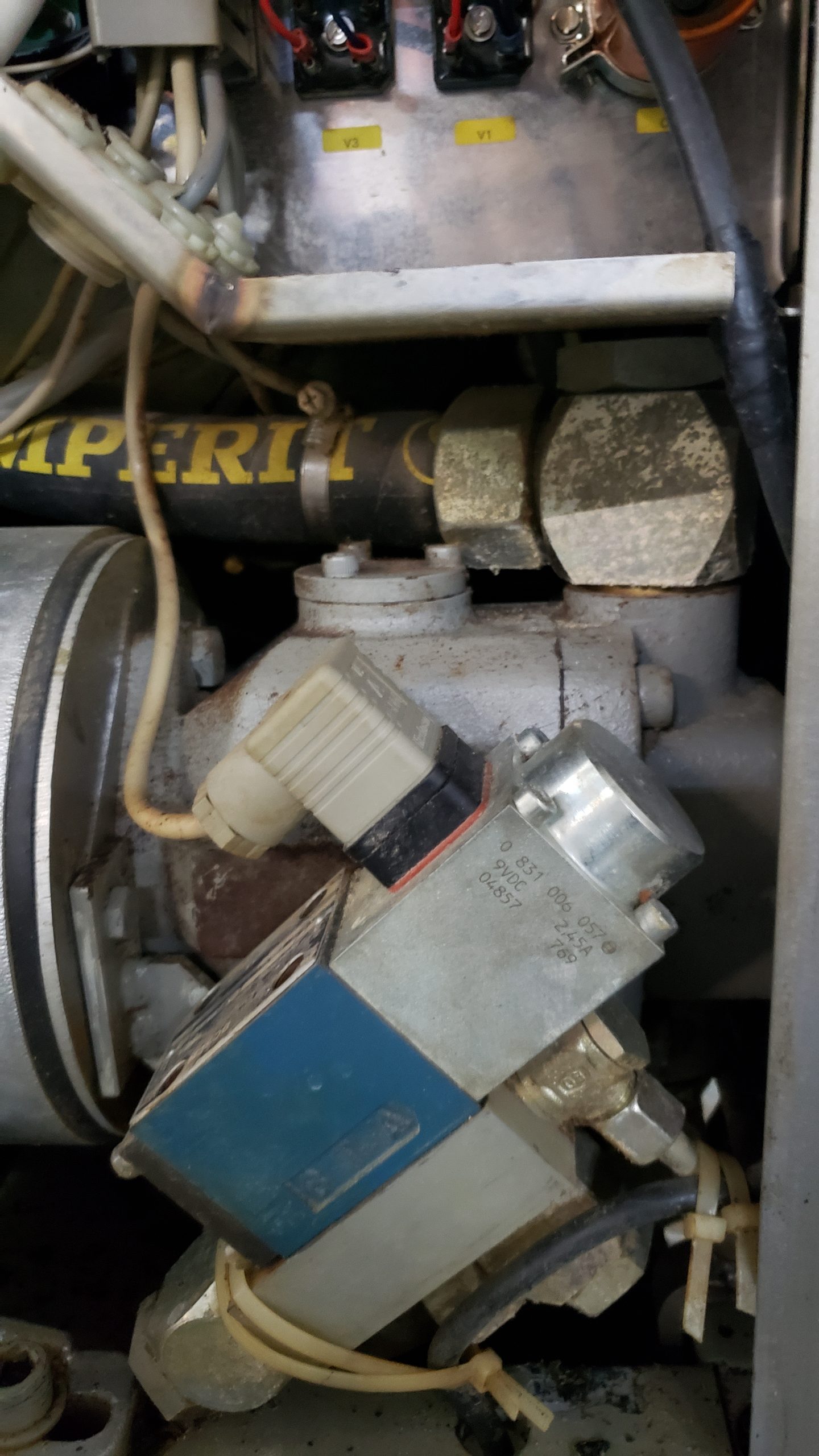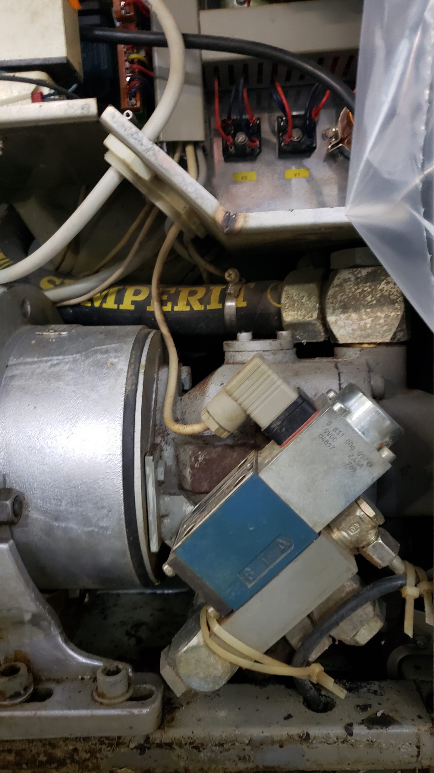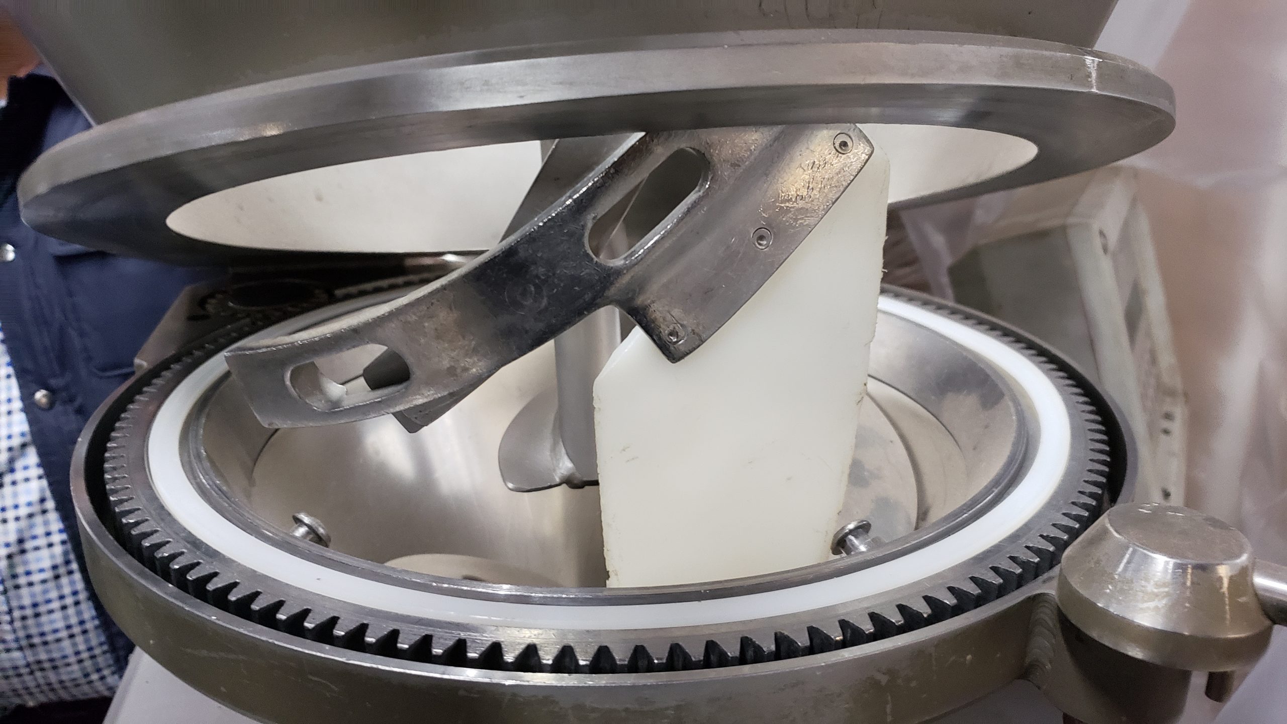 Vemag Robot 500 Vacuum Filler, Type 128/230 PC 878 Touch control, 26 in. diameter x 22 in. deep hopper, agitator, twin-screw, air-operated guillotine cutter, and 7 different UHMW formers tips.